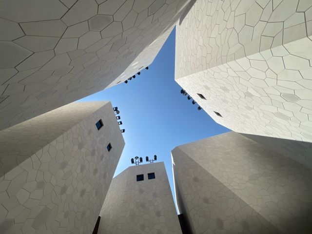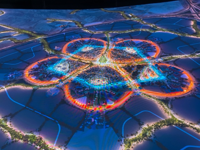 まずは、サウジアラビア館の分散配置された建築と隙間のスペース(ひもろぎ空間)を体感し、次回開催されるリヤド万博の迫力ある映像に圧巻され、私の中では一番の建築・空間でした。水平垂直のグリットパターンではなく、複数のベクトルが重なり合い、隙間を形成した空間は、次への空間パターンが分からず、視線や自然光、風の入り方がとてもドラマチックでした。