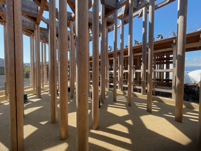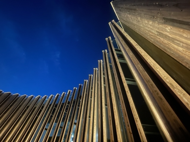 運よく一番観たかった日本館は、夕方の時間帯で抽選に当選し、照明により演出された建築や水面テラスがとても美しく観えました。ドミノをイメージした柱壁のデザインも良く表現され魅力のある建築でした。施設のコンセプトである、「いのちといのちのあいだ」「無数な小さな循環」が成り立つ意味や価値が、うまくハードにも表現されていました。
